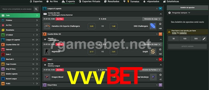 O vvvbet oferece uma grande seleção de opções de apostas em e-sports com probabilidades competitivas